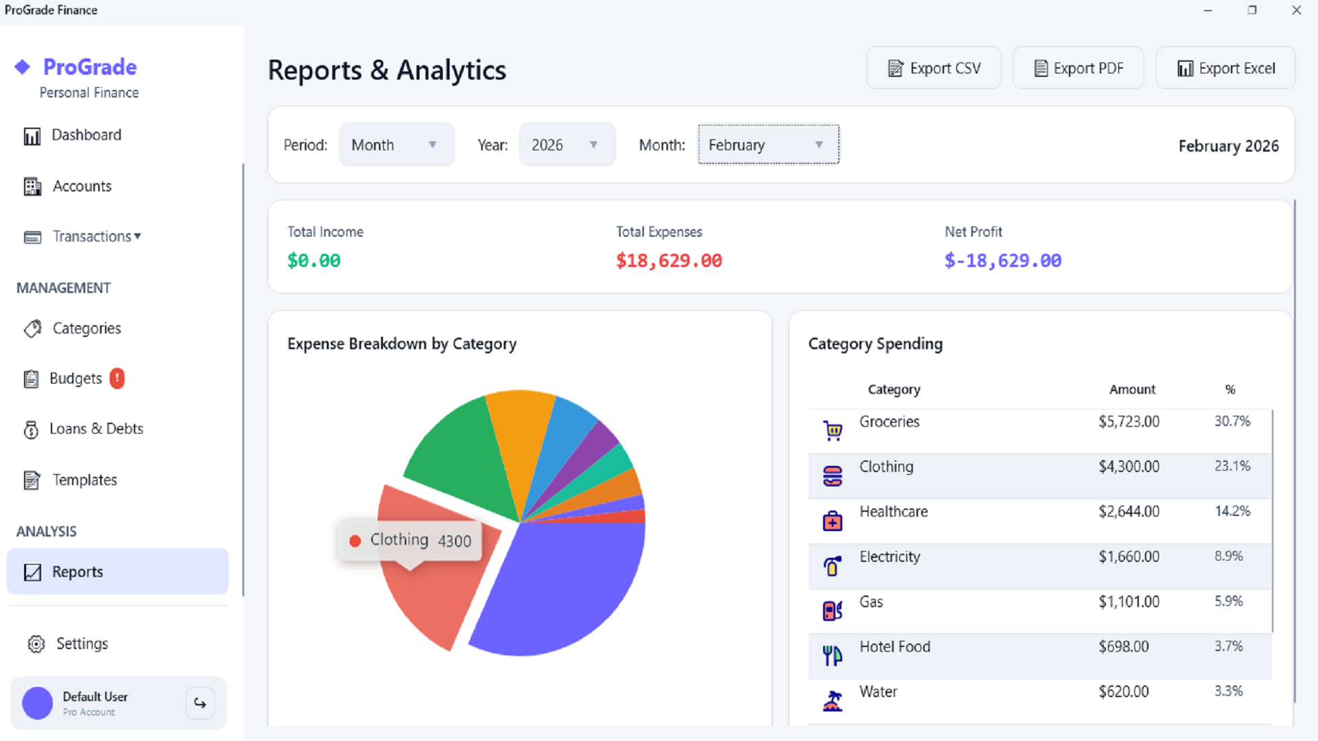 - Detailed Reports: Visual charts and insights into your financial health.